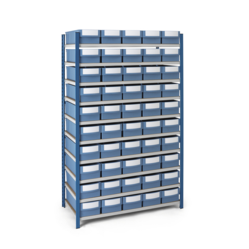 "longDescription": "<h2>Set Regal mit Regalkästen ohne Sichtöffnung ab 3,8L RAJA</h2><h3>Gut sortiert und beschriftet– Set Regal mit Regalkästen und Beschriftungsfeldern</h3><ul><br><li>Praktisches Set: Regal mit Sichtlagerkästen RAJA in gewünschter Größe</li ><br><li>Höhenverstellbare Fachböden</li><br><li>Einfache und schnelle Montage</li><br></ul><p>Das Set Regal mit Regalkästen garantiert Ihnen ein umfassendes Ordnungssystem für Lager und Werkstatt. Die Regalkästen sind ohne Sichtöffnung, stattdessen mit einem Beschriftungsfeld an der Frontseite ausgestattet. Gerade in staubiger Umgebung empfehlen wir die Verwendung geschlossener Regalkästen, um die Ablagerung von Staub- und Schmutzpartikeln zu vermeiden. Die Beschriftungsfelder auf der Frontseite der Regalkästen garantieren ein übersichtliches Ordnungssystem. Die Regalkästen werden, passend zu den Streben des Regals, in einheitlichem Blau angeboten. Wählen Sie je nach Bedarf bzw. Größe Ihrer Produkte Ihr Set inklusive Regalkästen mit einem Fassungsvermögen von 3,8 Litern (Bestell-Nr. 287651), 12 Litern (Bestell-Nr. 287649) oder 15 Litern (Bestell-Nr. 287650). Je nach gewählter Größe erhalten Sie ein Regal mit 12 Fachböden und 84 Kästen (3,8 Liter) oder ein Regal mit 10 Fachböden und 54 Kästen (12 und 14 Liter). Bitte beachten Sie, dass aufgrund der Regal-Kapazität nur 50 Kästen (Bestell-Nr. 287649 und 287650) in das Regal passen. Aufgrund der VE von 6 Stück erhalten Sie im Set 54 Regalkästen. Darin können Sie alle Produkte und Kleinteile jeder Art sicher und übersichtlich verstauen.</p ><br><p>Sie interessieren sich auch rund um das Thema Lagerausstattung, Transportgeräte, Packtische und vieles mehr? Dann sind Sie bei uns genau richtig!<br><br><p><strong>Weitere Details</strong></p><br><ul><br><li>Maße Regale: B 1240 x T 400 x H 2000 mm (287651) mit 12 Regalböden, B 1240 x T 500 x H 2000 mm (287649) mit 10 Regalböden, B 1240 x T 600 x H 2000 mm 287650) mit 10 Regalböden<br><li>Regal passend für Anzahl Sichtlagerkästen RAJA: 50 x 12 l (287666), 50 x 15 l (287670), 84 x 3,8 l (287659)</li><br><li>Außenmaße Sichtlagerkästen 12 l: 500 x 234 x 140 mm</li><br><li>Außenmaße Sichtlagerkästen 15 l: 600 x 234 x 140 mm</li><br><li>Außenmaße Sichtlagerkästen 12 l: 400 x 156 x 90 mm</li><br><li><strong>Gewicht pro Regalboden: 125 kg</strong></li><br><li>Material Regal: Profilstahl</li></ul><br>",