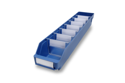 Aus bruchsicherem Polypropylen, in blau. Seitliche Nutenführungen und Bodenfixierungen ermöglichen das Einstecken von Querteilern und erlauben somit eine individuelle Kasten-Unterteilung. Sichtöffnung. Mit Etikettierfläche. Temperaturbeständig von -20 °C bis +80 °C. Material Lebensmittelgeeignet.