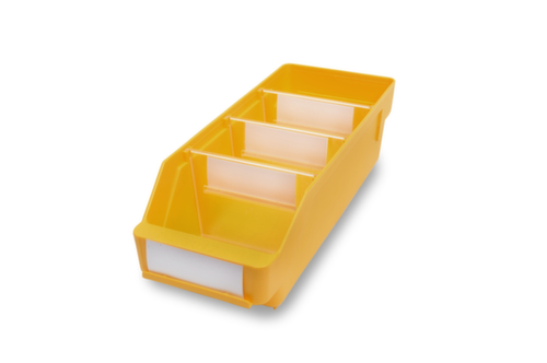 Aus bruchsicherem Polypropylen, in gelb. Seitliche Nutenführungen und Bodenfixierungen ermöglichen das Einstecken von Querteilern und erlauben somit eine individuelle Kasten-Unterteilung. Sichtöffnung. Mit Etikettierfläche. Temperaturbeständig von -20 °C bis +80 °C. Material Lebensmittelgeeignet.