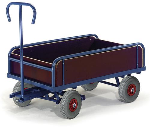 "metaDescription": "Rollcart 2-achsiger Handwagen mit Lenkung, Traglast 400 kg, Ladefläche 930 x 535 mm - Tragl. 400kg, Ladefl. LxB 930x535mm, Holzplatte, 4 Bordwände (Vollwand), RAL5010,4 Räder, Luft-Bereifung",