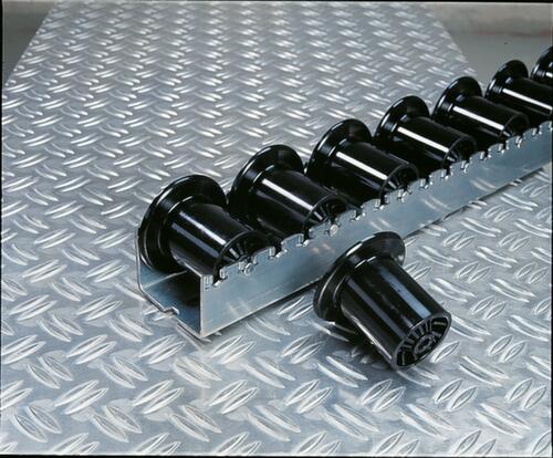 "description": "bis 130 kg Traglast pro Rolle, mit Zylinder- oder Spurkranzrollen, aus Kunststoff oder Stahl, in verschiedenen Längen",