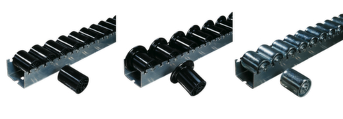 "longDescription": "<h2>Rollenleiste</h2><strong>optimiert den Durchlauf von beladenen Paletten</strong><br><ul><li><strong>Steigerung der Produktivität</strong> - drastische Zeiteinsparung und Verringerung von Kommissionierfehlern</li><li><strong>Robust und korrosionsgeschützt</strong> - Leiste aus glanzverzinktem Stahl</li></ul><br><strong>Sie haben die Wahl:</strong><br><strong>Leichte Bauart mit 4 kg Traglast/Rolle</strong><br><ul><li>Für Kunststoff-, Aluminiumbehälter, Kartons etc.</li><li>Mit Kunststoffrollen</li></ul><strong>Schwere Bauart mit 65 oder 130 kg Traglast/Rolle</strong><br><ul><li>Für Paletten, Kisten etc.</li><li>Rollen aus Kunststoff oder Stahl</li><li><strong>Für nahezu alle Arten von Lagereinheiten</strong> - mit Zylinderrollen</li><li><strong>Für Lagereinheiten mit stabiler, ausgeprägter Seitenkante</strong> - mit Spurkranzrollen</li></ul>",