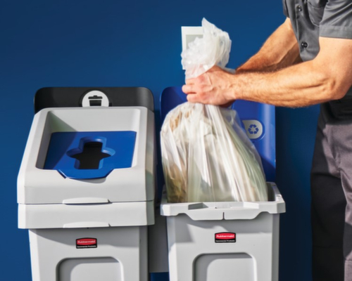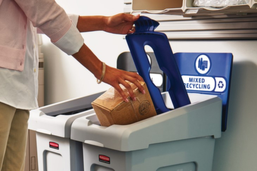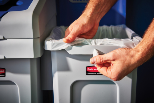 Die wichtigsten Maße des Rubbermaid Abfallbehälters Slim Jim® Starter auf einen Blick:Fixiervorrichtung zur Sackbefestigung. Kopfteil aus schlagfestem Polyethylen in grau. Korpus aus schlagfestem Polyethylen in grau. Wandkonstruktion mit Lüftungskanälen.