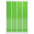 Flügeltür. Verschließbar mit Zylinderschloss. Konstruktion aus Stahl, verschweißt. Korpus mit elektrostatischer Pulverbeschichtung in RAL7035 Lichtgrau. Front mit elektrostatischer Pulverbeschichtung in RAL6018 Gelbgrün.