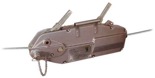 "longDescription": "<h2>Seilzug-Gerät</h2><strong>für den Einsatz in der Industrie</strong><br><ul><li>Einfach und sicher in der Handhabung, aufgrund der ergonomischen, nahezu wartungsfreien Konstruktion</li><li>Der große Hubweg bewirkt eine hohe Arbeitsgeschwindigkeit</li><li>Kompaktes Gehäuse aus hochfester Aluminiumlegierung ermöglicht ein äußerst geringes Eigengewicht</li><li>Verschleißarme, parallel angeordnete, großflächige Klemmbackenpaare schützen das Zugseil durch gleichmäßige Flächenbelastung</li><li>Standfestigkeit durch glatte, großflächige Bodenauflagen sowohl in horizontaler als auch in vertikaler Arbeitsstellung</li><li>Seilvorschubhebel und Rückzughebel in einer Ebene ermöglichen die schmale Bauart und garantieren zentrischen Kraftfluss </li><li>Überlastschutz durch Verwendung eines Abscherstiftes im Vorschubhebel</li><li>Reserve-Abscherstifte befinden sich im Handhebelgriff bzw. im Tragegriff und können, ohne Entlastung des Zugseiles, ausgewechselt werden</li></ul><strong>Gut zu wissen!</strong><br><br>Dieses Seilzug-Gerät ist speziell für den Einsatz in der Industrie, im Hoch- und Tiefbau, im Freileitungsbau, im Schiffbau und in Ölraffinerien konzipiert worden. <br>",