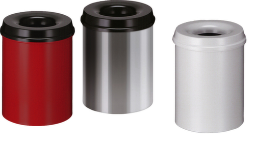 "title": "Selbstlöschender Papierkorb aus Stahl, 200 l, alu, Kopfteil schwarz",