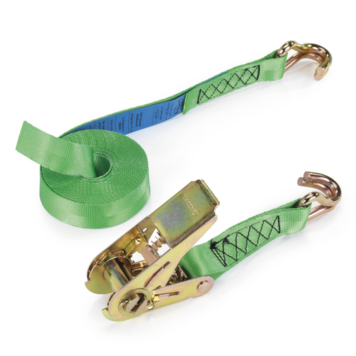 "longDescription": "<h2>Spanngurt</h2><ul><li>Aus 100% Polyesterfasern mit geringer Dehnbarkeit</li><li>Weiche und flexible Struktur verursacht keine Schäden an empfindlichen Waren</li><li>Temperatur- und UV-beständig, fault nicht und ist resistent gegen chemischen Produkten</li></ul><br><h3>2-teilige Ausführung:</h3><ul><li>1 Gurtteil mit Doppelhaken an einem Ende und mit Ratsche am anderen Ende</li><li>1 Gurtteil mit Doppelhaken an einem Ende und anderes Ende lose</li></ul>",