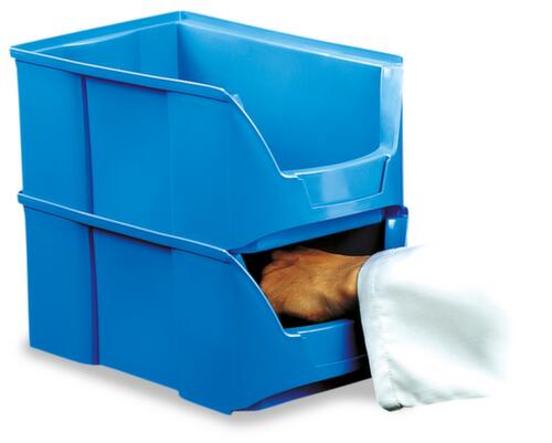 "title": "Stapelbarer Sichtlagerkasten Futura mit tiefer Eingrifföffnung, blau, Tiefe 510 mm",