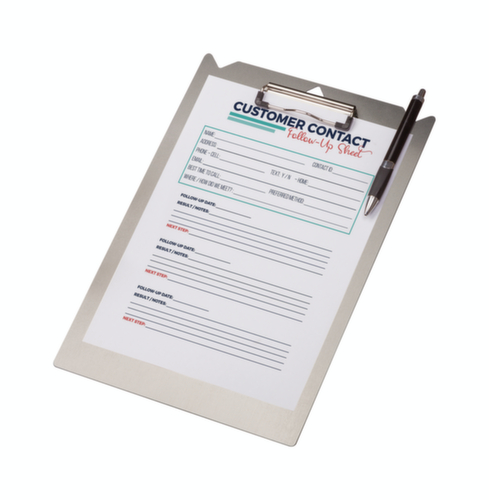 "longDescription": "<h2>Klemmbrett</h2><strong>besonders leicht und komfortabel</strong><br><ul><li><strong>Stifte immer parat</strong> - mit 2 Stiftschlitzen</li><li><strong>Geringes Gewicht bei hoher Steifigkeit</strong> - aus Aluminium mit Schutzlackierung</li></ul><br><strong>Sie haben die Wahl:</strong><br><ul><li><strong>Jederzeit am Transportwagen zu befestigen</strong> - wahlweise Klemmbrett mit Befestigungsschelle</li></ul>",