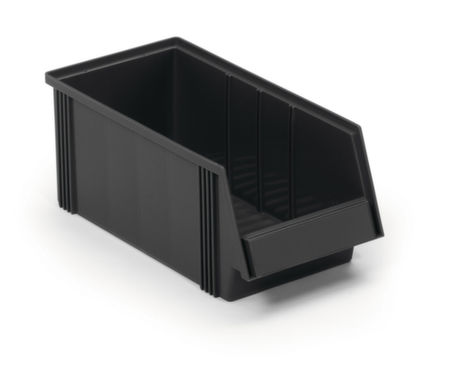 Aus bruchsicherem Polypropylen in schwarz. Temperaturbeständig von -20 °C bis +70 °C. Boden innen gewellt. Dadurch ist die Entnahme von Kleinteilen besonderes einfach. Mit Beschriftungsfeld vorne. Gleiche Breiten stapelbar. ESD - elektrisch leitfähige Ausführung.