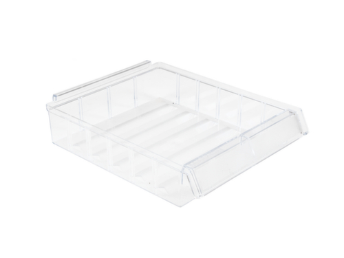 Gehäuse aus bruchsicherem Polypropylen / Schubladen aus schlagzähem Polystyrol. Schubladen in transparent. Schubladenboden gewellt zum leichteren Greifen kleiner Artikel. Böden aus Stahl, mit korrosionsschützender Zinkbeschichtung.