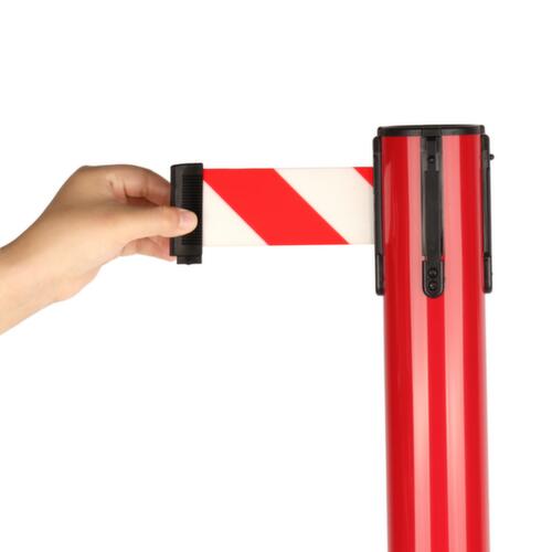 Die wichtigsten Maße des UDOBÄR Absperrsystems auf einen Blick:Fuß rund. Gurt aus Polyester in rot/weiß. Gurt automatisch einziehbar. Pfosten aus Kunststoff in rot. Fuß aus Gusseisen in schwarz. Zum Aufstellen auf dem Boden.