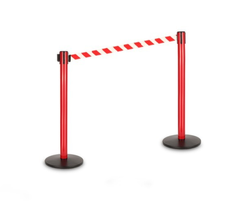 Für den Innen- und Außenbereich geeignet. Geeignet für Baustellen, den Industriebereich oder den öffentlichen Raum, wo die robuste und auffällige Konstruktion überzeugt. Set bestehend aus: je 2 Pfosten und Füßen, 1 Gurt.
