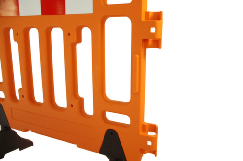 Die wichtigsten Maße des UDOBÄR Absperrsystems auf einen Blick:Reflexstreifen in Signalfarbe erhöhen die Sichtbarkeit. Fuß dreieckig. Fuß aus Hartgummi in schwarz. Aus Kunststoff in orange mit rot/weißen Reflexstreifen. Zum Aufstellen auf dem Boden.