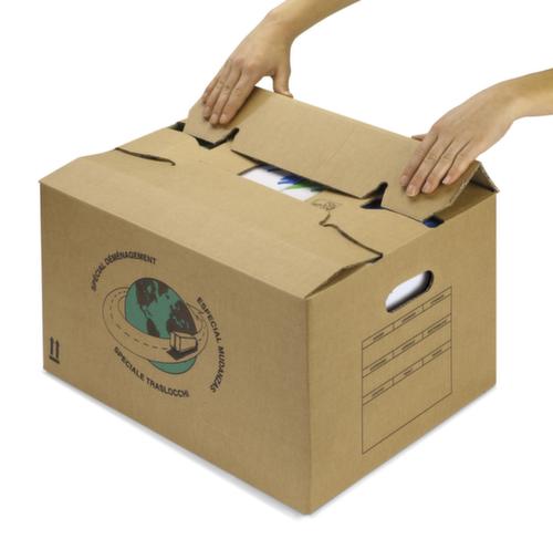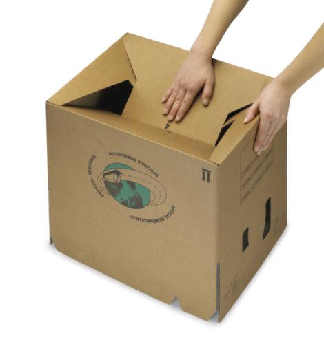 Die wichtigsten Details auf einen Blick:Für Packstücke bis 30 kg. Der Karton lässt sich schnell aufbauen durch den halbautomatischen Boden. Verschließbar mit gekreuzte Klappen. Tragegriffe. Mit Beschriftungsfeld an den Seiten.