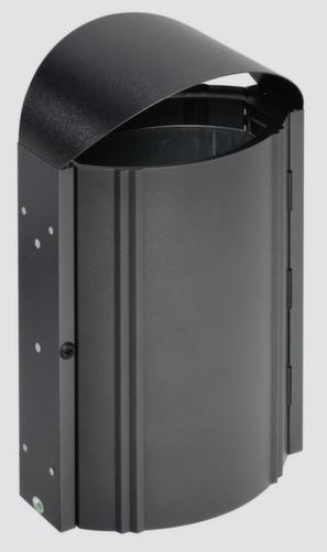 "longDescription": "<h2>Abfallbehälter</h2><strong>keine Ablage von Müll dank rundem Schutzdach</strong><br><ul><li><strong>Langlebig und rostfrei</strong> - aus verzinktem Stahlblech</li><li><strong>Kratzfeste Oberfläche</strong> durch Pulverbeschichtung</li><li><strong>Leicht zu reinigen</strong> durch herausnehmbaren Innenbehälter</li><li><strong>Einfache Entleerung</strong> durch Flügeltür an der Front</li></ul><br><strong>Sie haben die Wahl:</strong><br><ul><li><strong>Flexibler Einsatz oder mehr Platz auf dem Boden</strong> - als Standgerät oder zur Wandmontage</li></ul>",
