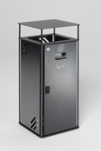"longDescription": "<h2>Abfallsammler</h2><strong>leichter Einwurf von allen 4 Seiten</strong><br><ul><li><strong>Stabil und kratzfest</strong> - Rahmen und Dach aus Stahl mit Pulverbeschichtung</li><li><strong>Leicht zu reinigen</strong> - herausnehmbarer Innenbehälter aus verzinktem Stahl mit Griffen</li><li><strong>Schutz vor unbefugtem Zugriff</strong> - Stangenschloss mit Doppelbartbetätigung und Schlüsselschild</li></ul><br><strong>Sie haben die Wahl:</strong><br><ul><li><strong>Edel oder natürlich</strong> - mit Wänden aus Stahl, Edelstahl, mit Echtholz oder in Holzoptik</li><li><strong>Raucherfreundlich</strong> - wahlweise mit integriertem Ascher</li></ul><br>Platzsparen mit der Kombilösung von Abfallsammler mit integriertem Ascher! Egal, ob in Raucherzonen oder Empfangsbereichen, der Abfallsammler von VAR kann sich sehen lassen.<br><br>Ausgestattet mit einem Dach kann der Abfallbehälter auch an ungeschützten Orten aufgestellt werden. Durch das Schutzdach wird verhindert, dass sich Regenwasser in Mülleimer sammelt. Deshalb ist eine bessere Entleerung des Innenbehälters möglich. Der Inneneinsatz ist aus verzinktem Stahlblech und damit auch robust gegen Nässe. <br><br>Rahmen und Dach sind aus pulverbeschichtetem Stahl. Dadurch ist der Abfallbehälter sehr stabil. Die Oberfläche ist robust gegen äußere Einflüsse. Je nach Ausführung sind die Wände mit Buchenleisten verkleidet. Diese sind aber lackiert und ebenfalls dadurch geschützt.<br><br>Entscheiden Sie sich zwischen der Variante mit 3 oder 4 Buchenleisten-Wänden, mit Wänden aus Stahlblech, mit Wänden aus Edelstahl oder mit Wänden in dunkler Holzoptik. Alle Modelle sind mit einer Flügeltür ausgestattet. Die Tür hat ein Stangenschloss mit Doppelbartbetätigung und Schlüsselschild. Dadurch wird ein Entfernen des Innenbehälters durch Fremde verhindert. <br>Bei den Modellen mit Stahl- oder Edelstahltür ist ein Aschenbecher integriert. Sparen Sie Platz indem Sie die Kombilösung aufstellen. Gerade in Durchgangsbereichen reicht die Größe von 0,7 Liter oftmals schon aus. <br>",