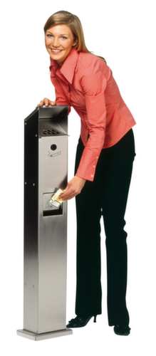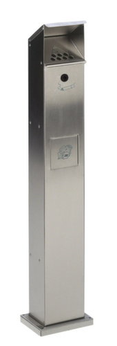 "longDescription": "<h2>Standascher</h2><strong>erlaubt keine Ablage von Müll dank Schrägdach</strong><br><ul><li><strong>Einfache Entleerung</strong> durch abklappbare Fronttür und herausnehmbare Innenbehälter</li><li><strong>Einfache Montage</strong> - Bodenplatte mit vorgebohrten Löchern zum Aufdübeln</li><li><strong>Sofort einsatzbereit</strong> - inklusive Befestigungsmaterial</li></ul><br><strong>Sie haben die Wahl:</strong><br><ul><li><strong>Auffällig oder elegant</strong> - aus Stahlblech mit farbiger Pulverbeschichtung oder aus Edelstahl</li></ul><br>Dieser Aschenbecher in Form einer Vierkantsäule besitzt ein abgeschrägtes Wetterschutzdach, das die Nutzung als Ablagefläche verhindert. Durch das Edelstahl oder verzinkte und pulverbeschichtetet Stahl ist eine hohe Korrosionsbeständigkeit gegeben und die Konstruktion hat eine Garantie von 3 Jahren.<br><br>Die nach vorne klappbare, verschließbare Fronttür erleichtert das Entleeren des 2 Liter-Inneneinsatzes. Eine Bodenplatte und dazugehörige Montagematerial zum Aufdübeln um den Ascher stand- und diebstahlsicher zu machen, wird mitgeliefert. Wahlweise mit oder ohne zusätzlichem Abfallbehälter.<br>",