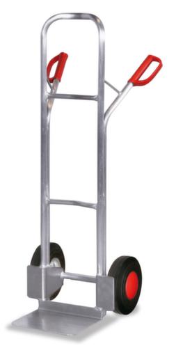 Hohe Stabilität ist durch die Konstruktion aus Aluminium, verschweißt gegeben. Mit Sicherheitsgriffen aus hochfestem Kunststoff. Dank dieser Griffe sind Sie bestens vor Verletzungen geschützt. Räder mit pannensicherer, bodenschonender Vollgummi-Bereifung auf Kunststoff-Felge. Rad Ø 260 mm. Naben mit für den Dauerbetrieb geeignetem Kugellager.