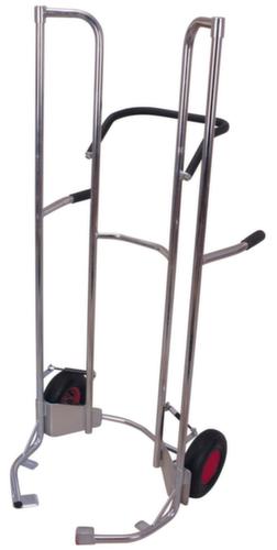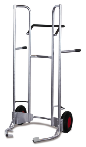 Die wichtigsten Maße der VARIOfit Transportkarre auf einen Blick:Eine leichtere Kippfunktion wird durch den günstigen Schwerpunkt in unmittelbarer Nähe der Achse gegeben. Ladungssicherung durch Hebelsystem mit Offenhalte- / Klemmfunktion. Konstruktion aus Stahl. Gestell mit korrosionsschützender Zinkbeschichtung. Räder mit bodenschonender und geräuscharmer Luft-Bereifung auf Stahlblech-Felge. Rad Ø 260 mm. Naben mit für den Dauerbetrieb geeignetem Kugellager.