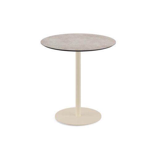 Die wichtigsten Maße des VEBA Gastrotisches Essentials Urban auf einen Blick:Tellerfußgestell aus Stahl in sandfarben. Platte aus HPL in Moonstone.
