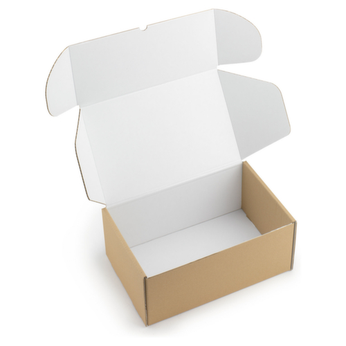 Die wichtigsten Details auf einen Blick:Für Packstücke bis 10 kg. Hohe Stabilität durch 4-fache Kartonstärke an den Seiten und doppelte Verstärkung an der Vorderseite. 2 seitliche Klappen zum Fixieren und Schützen der Ware. Wirkt schützend vor Stößen. Verschließbar mit Lasche.