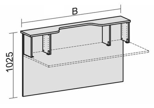 "longDescription": "<h2>Thekenvorbauelement</h2><strong>für modulares Thekensystem</strong><br><ul><li>Thekenplatten mit Melaminharzbeschichtung, 25 mm stark</li><li> Oberfläche kratzfest, pflegeleicht, abrieb- und zigarettenglutfest, blend- und reflexfrei</li><li>Kombinierbar mit den 4-Fuß und C-Fuß-Schreibtischen der Serie Pro</li><li>Mit Stauraum durch Fachseiten</li></ul>",