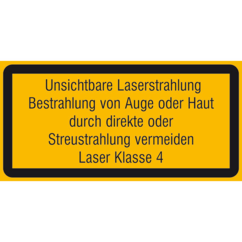 "Symbol/Text": "Unsichtbare Laserstrahlung Bestrahlung vermeiden (…) Laser Kl. 4",