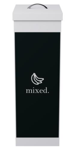 Die wichtigsten Maße des Abfallbehälters auf einen Blick:Mit Klappdeckel - die Öffnung erfolgt manuell. Wandkonstruktion geschlossen. Boden geschlossen. Korpus aus schlagzähem Polystyrol in schwarz/weiß. Deckel aus schlagzähem Polystyrol in weiß.