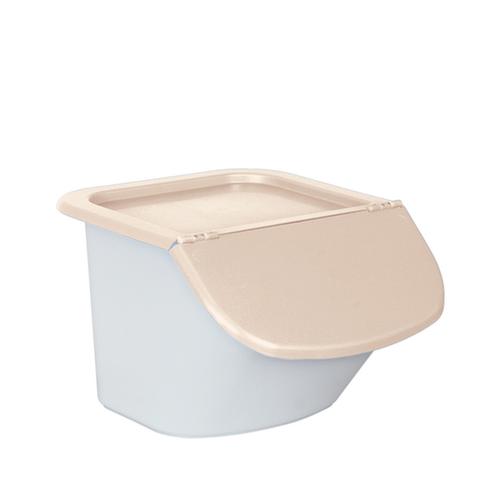 Aus bruchsicherem Polypropylen. Behälter in weiß und Deckel in beige. Wände: glatte, nahtlose Flächen für eine leichte Reinigung. Geeignet für Schüttgüter aller Art. Verschließbar mit Klappdeckel. Der Deckel lässt sich auch öffnen, wenn mehrere Boxen aufeinander gestapelt sind. Der Behälterinhalt lässt sich dank der abgeschrägten Eingrifföffnung leicht entnehmen. Lebensmittelgeeignet.